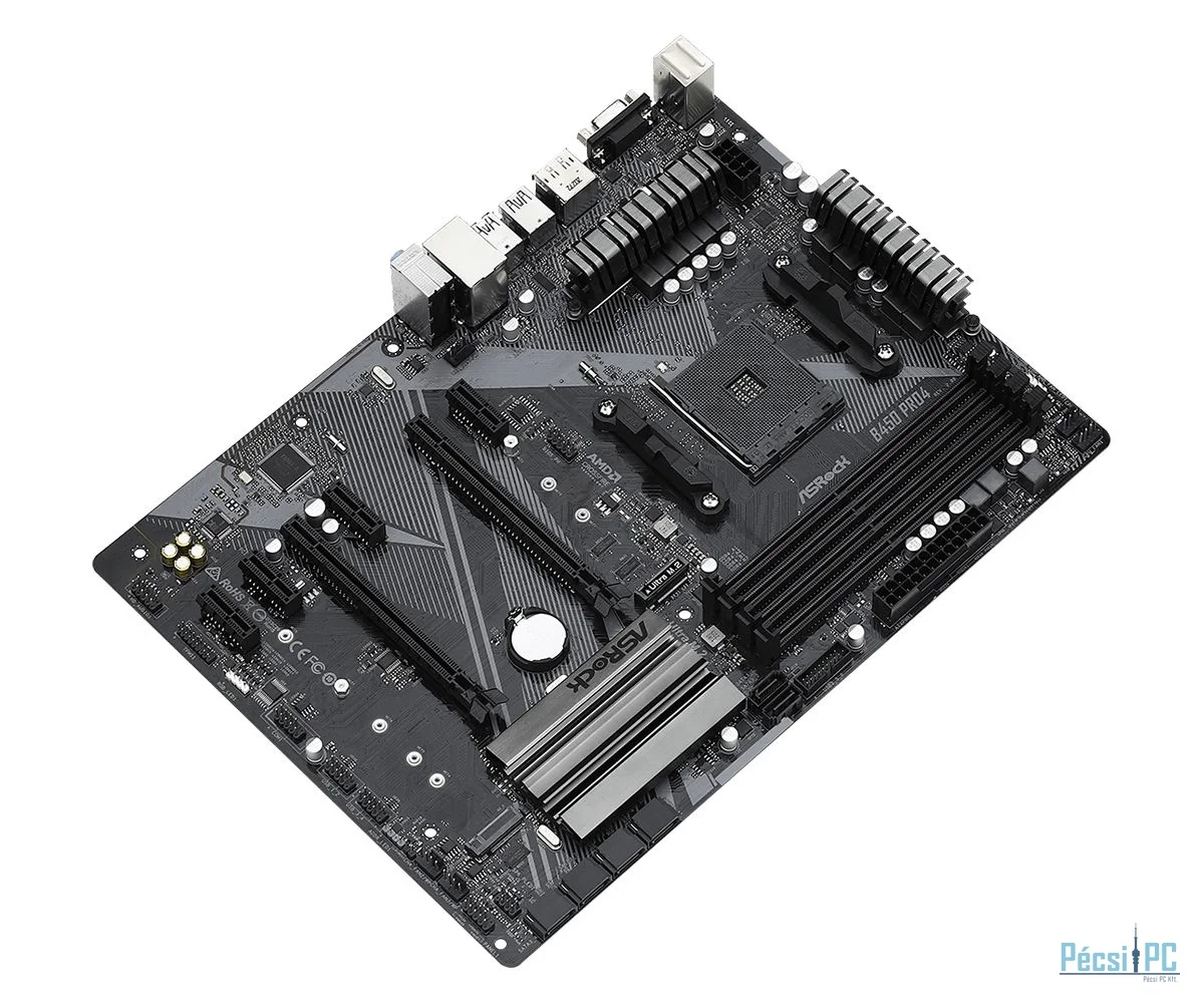 AM4, AMD B450, 4xDDR4, Max:3200MHz, Max:128GB, 2xPCIE16, 4xPCIE1, 6xSATA3, RAID, 2xUSB, 5xUSB3.1, 1xUSB3.1C, VGA, HDMI, DisplayPort, PS2:1 db, 7.1, Gigabit, 1xM.2, 1xUltra M.2, ATX