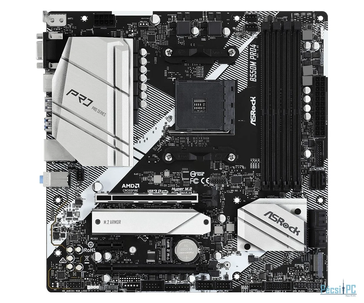 AM4, AMD B550, 4xDDR4, Max:3200MHz, Max:128GB, 2xPCIE16, 1xPCIE1, 6xSATA3, RAID, 2xUSB, 5xUSB3.2, 1xUSB3.2C, VGA, HDMI, PS2:1 db, 7.1, Gigabit, 1xM.2, 1xHyper M.2, Micro-ATX