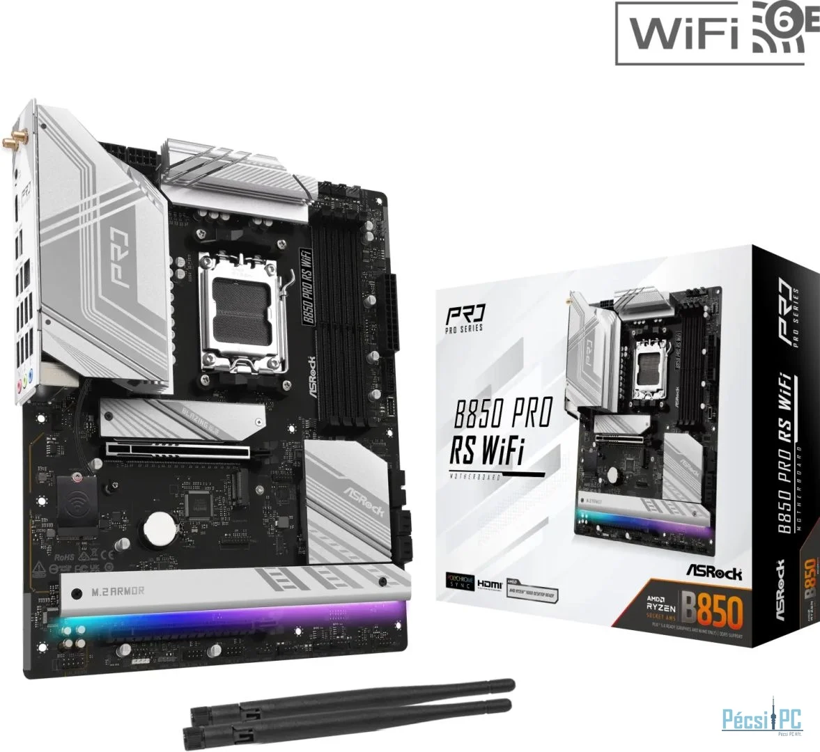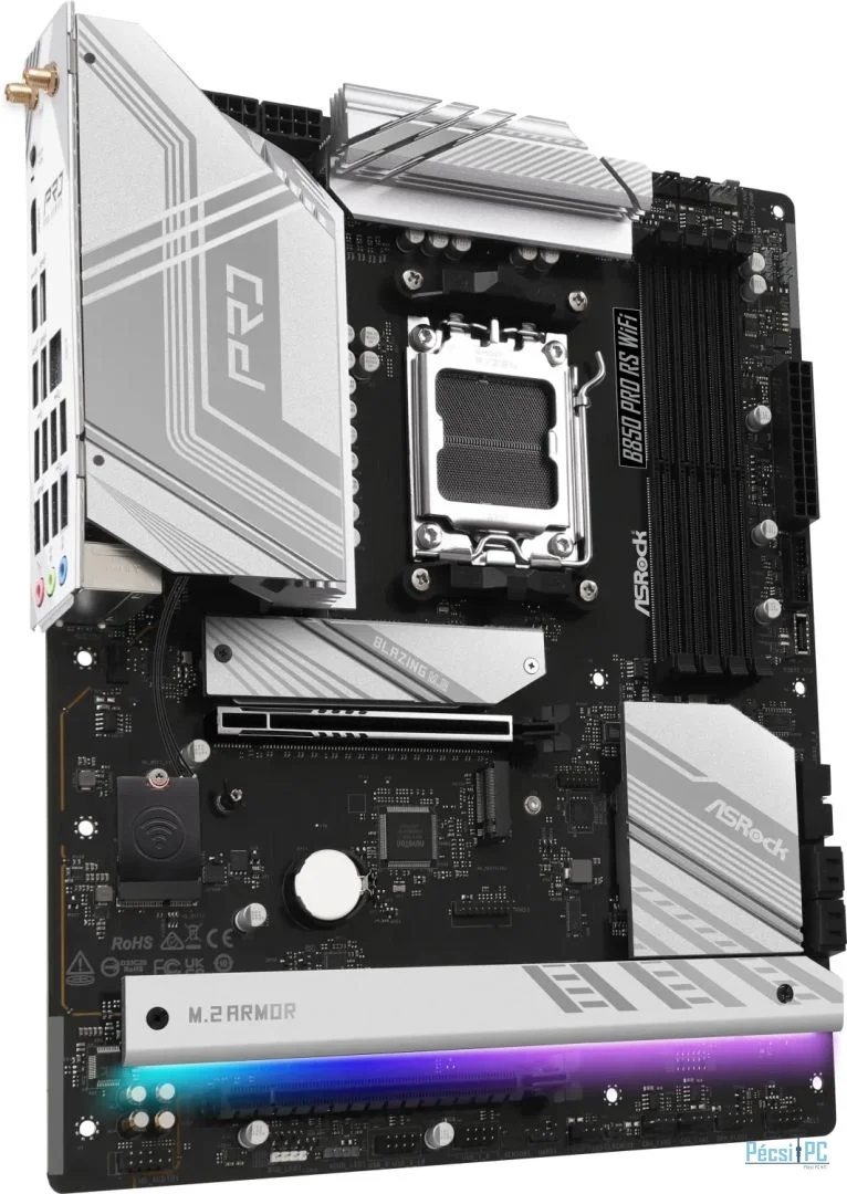 AM5, AMD B850, 4xDDR5, Max:5600MHz, Max:256GB, 2xPCIE16, 2xSATA3, RAID, 6xUSB, 4xUSB3.2, 2xUSB3.2C, HDMI, 7.1, 2.5Gb/s LAN, WiFi, Bluetooth, 1xUltra M.2, 2xHyper M.2, 1xBlazing M.2, ATX, RGB, Gamer