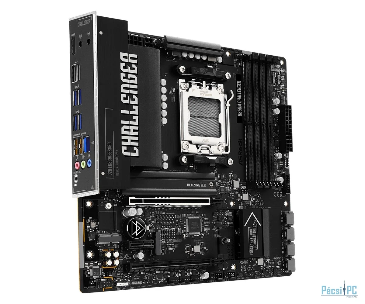 AM5, AMD B850, 4xDDR5, Max:5600MHz, Max:256GB, 2xPCIE16, 1xPCIE4, 4xSATA3, RAID, 2xUSB, 6xUSB3.2, HDMI, 7.1, 2.5Gb/s LAN, 1xHyper M.2, 1xBlazing M.2, Micro-ATX