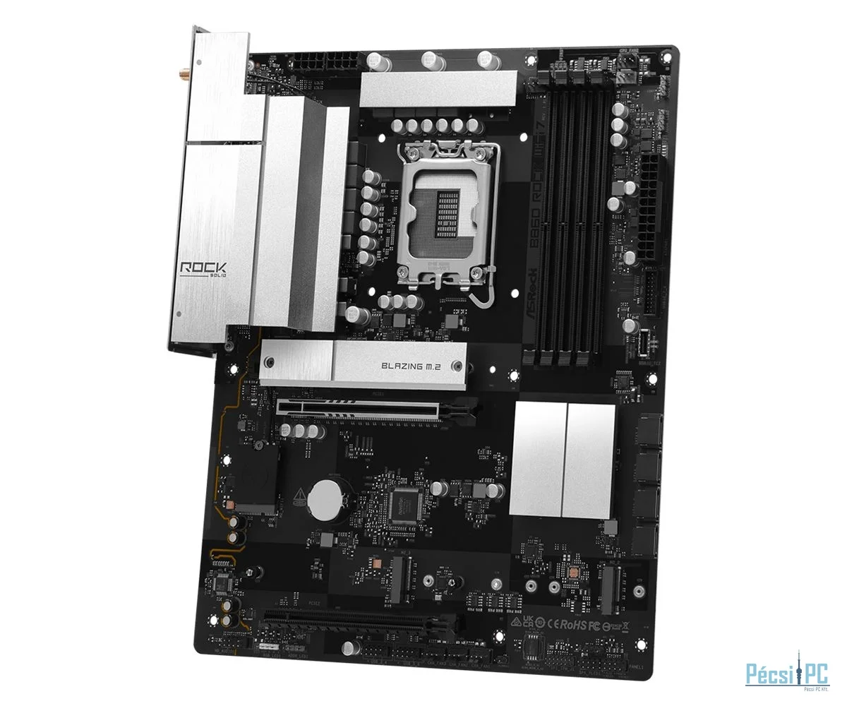LGA1851, Intel B860, 4xDDR5, Max:5600MHz, Max:256GB, 2xPCIE16, 4xSATA3, RAID, 2xUSB, 6xUSB3.2, 1xUSB3.2C, HDMI, 7.1, 2.5Gb/s LAN, WiFi, Bluetooth, 1xM.2, 2xHyper M.2, 1xBlazing M.2, ATX, Gamer