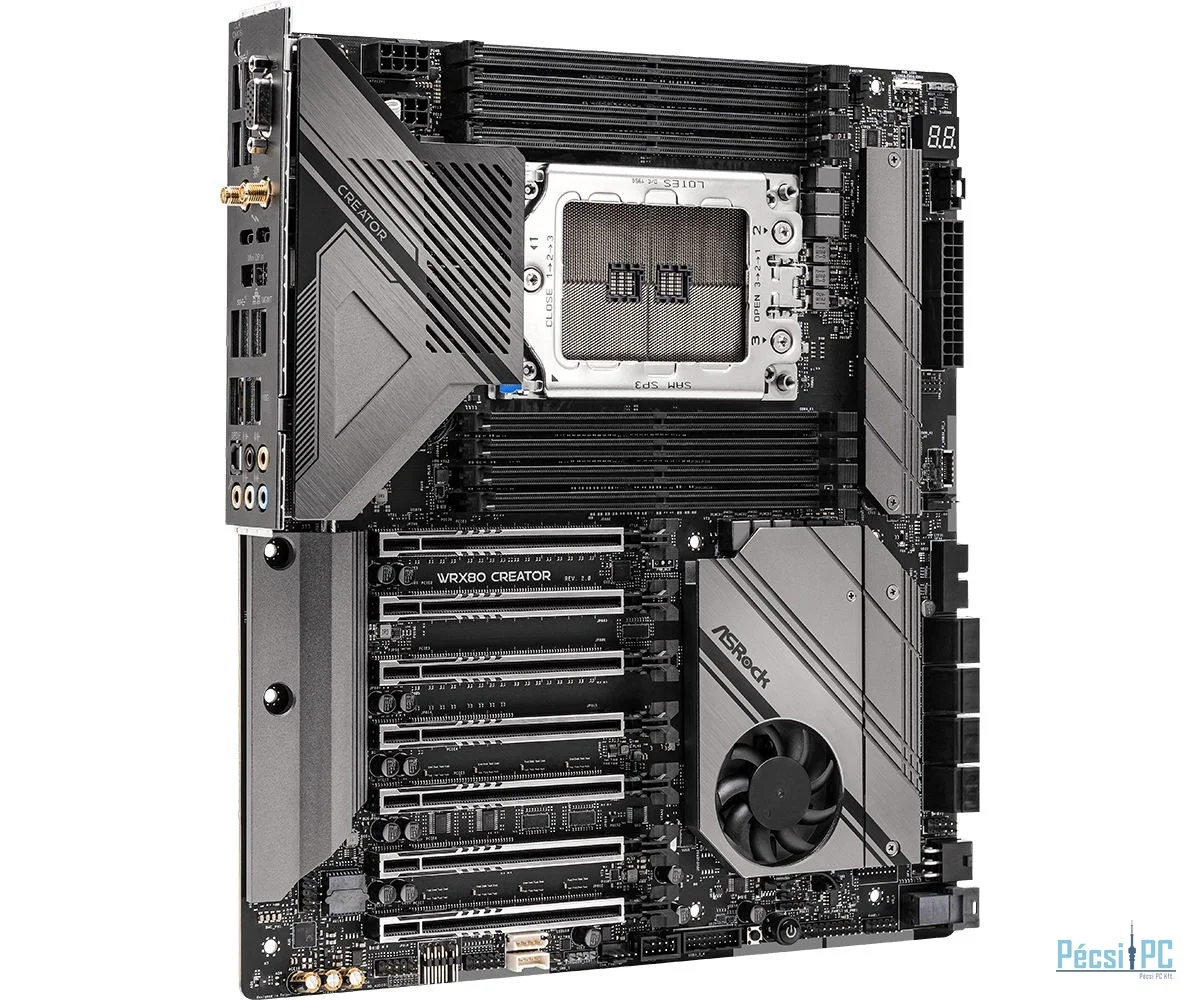 sWRX8, AMD WRX80, 8xDDR4, Max:3200MHz, Max:2048GB, 7xPCIE16, 8xSATA3, RAID, 6xUSB3.2, 2xUSB4.0C, VGA, Mini DisplayPort, 7.1, SPDIF optikai kimenet, 10Gb/s LAN, 10Gb/s LAN, WiFi, Bluetooth, 2xHyper M.2, 1xU.2, E-ATX