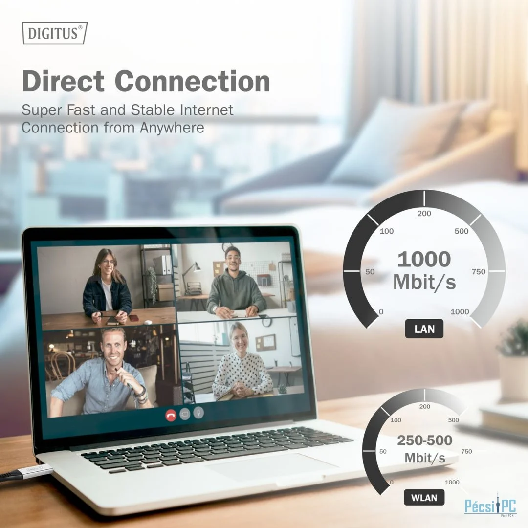 Assmann USB3.2 Gen1 - RJ45 CAT6A S/FTP Ethernet cable 1Gbit/s,10m Black