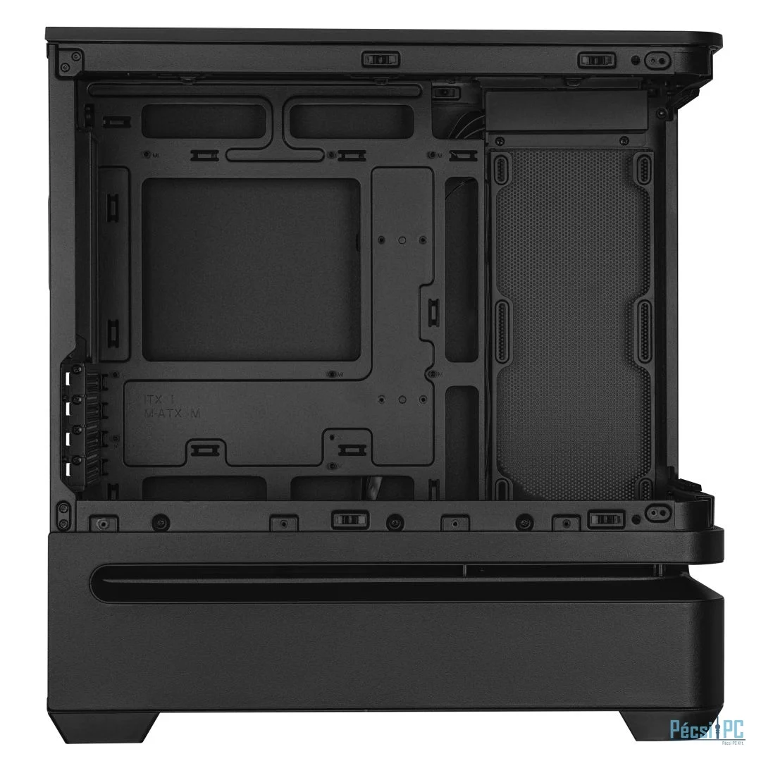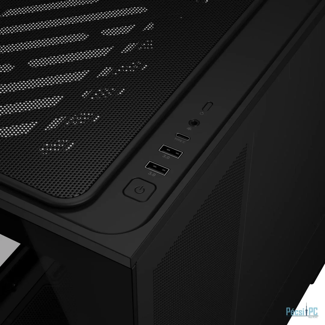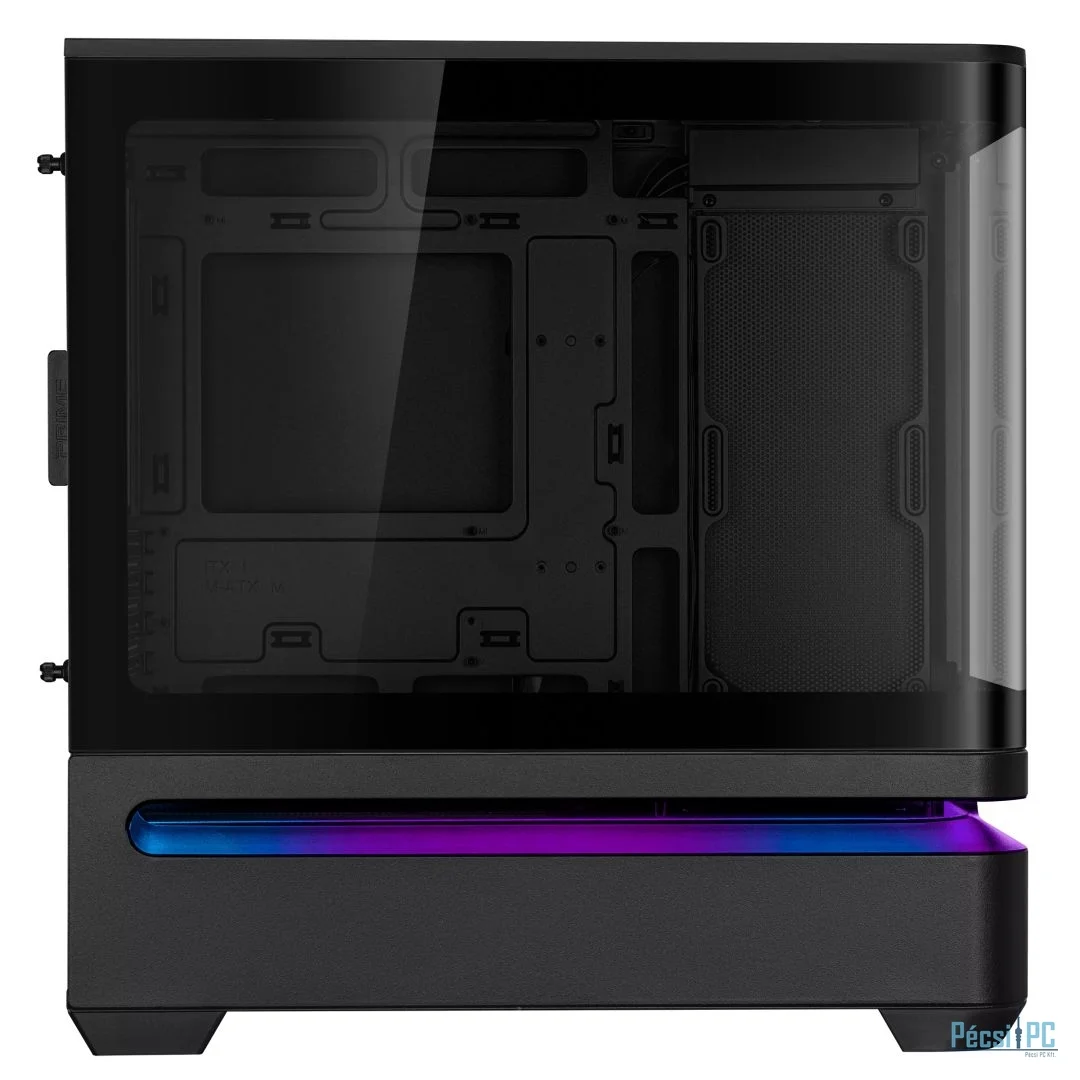 microATX, Black, 2x3,5", 2xUSB3.2, 1xUSB Type-C, Audio, Táp nélkül, 460x441x236mm, Tempered glass window, RGB, Gamer