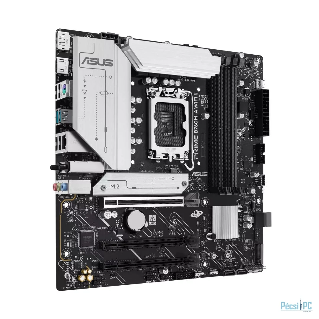 LGA1700, Intel B760, 4xDDR5, Max:5600MHz, Max:256GB, 3xPCIE16, 4xSATA3, RAID, 4xUSB, 2xUSB3.2, HDMI, DisplayPort, PS2:1 db, 7.1, 2.5Gb/s LAN, WiFi, Bluetooth, 2xM.2, Micro-ATX