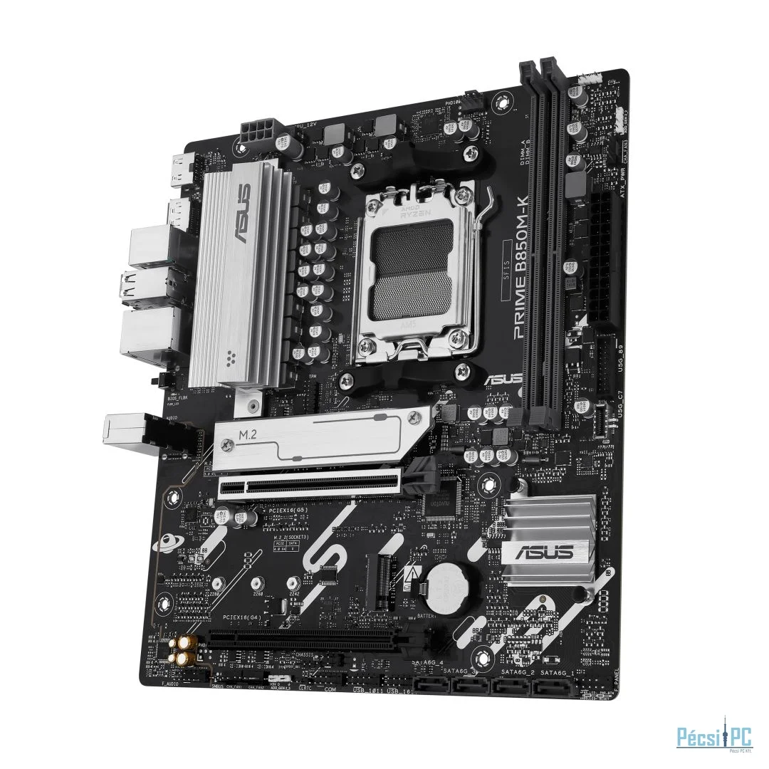 AM5, AMD B850, 2xDDR5, Max:5600MHz, Max:128GB, 2xPCIE16, 4xSATA3, RAID, 2xUSB, 2xUSB3.1, 2xUSB3.2, HDMI, DisplayPort, PS2:1 db, 7.1, 2.5Gb/s LAN, 2xM.2, Micro-ATX