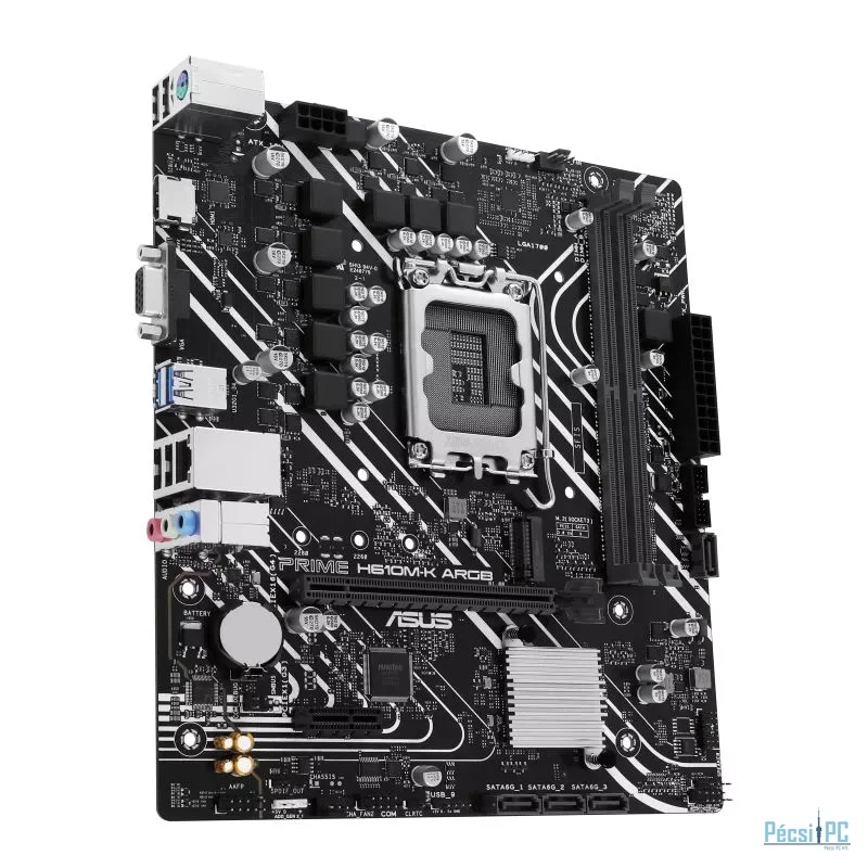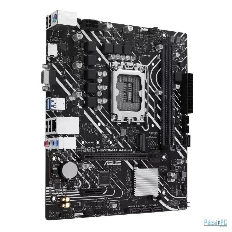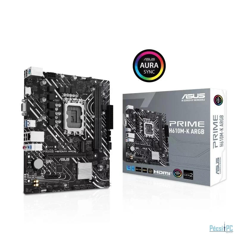 LGA1700, Intel H610, 2xDDR5, Max:5600MHz, Max:96GB, 1xPCIE16, 1xPCIE1, 4xSATA3, 4xUSB, 2xUSB3.2, VGA, HDMI, PS2:1 db, 7.1, Gigabit, 1xM.2, Micro-ATX, RGB, Gamer