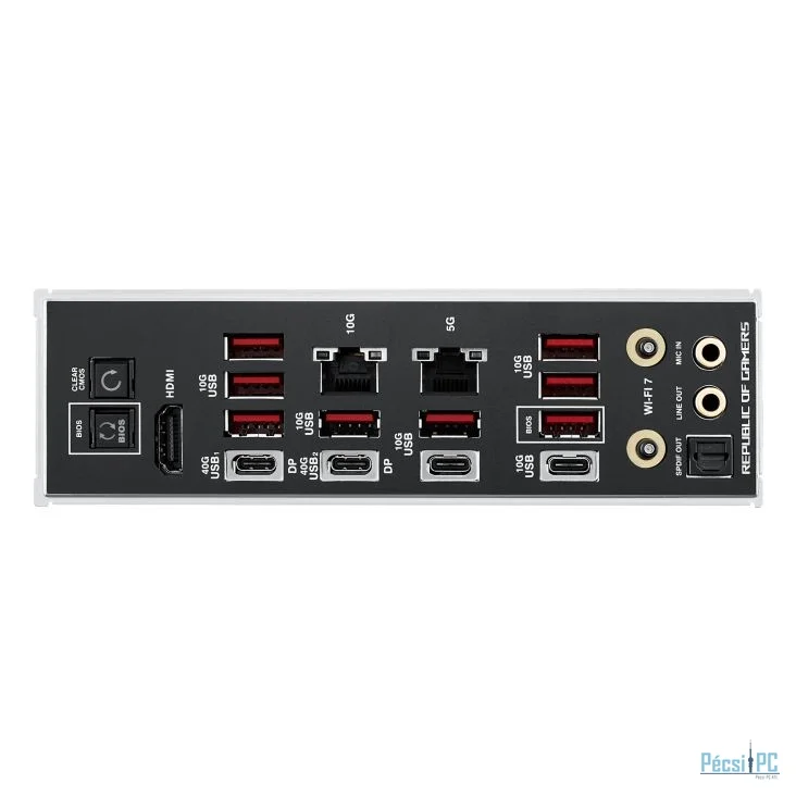 AM5, AMD X870, 4xDDR5, Max:5600MHz, Max:256GB, 6xPCIE16, 4xSATA3, RAID, 8xUSB3.2, 2xUSB3.2C, 2xUSB4.0C, HDMI, 7.1, SPDIF optikai kimenet, 5Gb/s LAN, 10Gb/s LAN, WiFi, Bluetooth, 5xM.2, E-ATX, Gamer