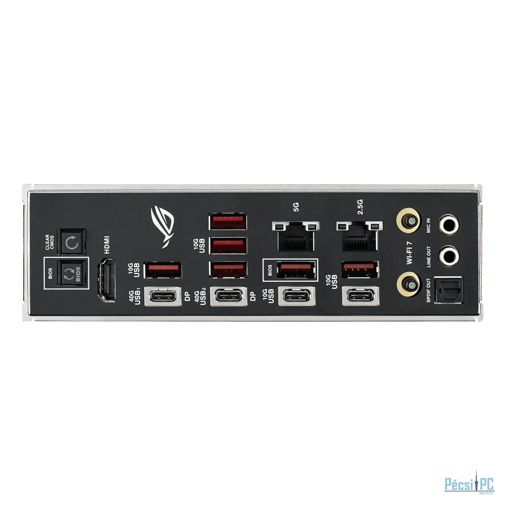 AM5, AMD X870, 4xDDR5, Max:5600MHz, Max:256GB, 3xPCIE16, 1xPCIE4, 4xSATA3, RAID, 6xUSB3.2, 2xUSB3.2C, 2xUSB4.0C, HDMI, DisplayPort, 7.1, SPDIF optikai kimenet, 2.5Gb/s LAN, 5Gb/s LAN, WiFi, Bluetooth, 5xM.2, ATX, RGB, Gamer