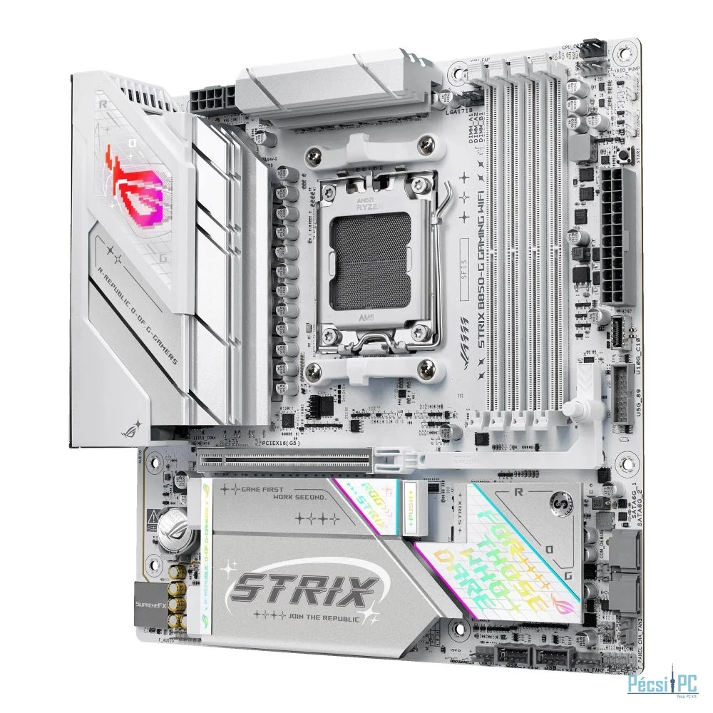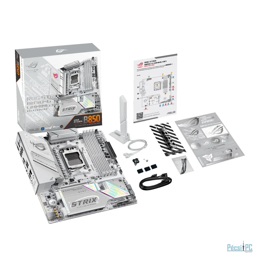 AM5, AMD B850, 4xDDR5, Max:5600MHz, Max:256GB, 2xPCIE16, 2xSATA3, RAID, 2xUSB, 6xUSB3.2, 2xUSB3.2C, HDMI, DisplayPort, 7.1, SPDIF optikai kimenet, 2.5Gb/s LAN, WiFi, Bluetooth, 4xM.2, ATX, RGB, Gamer