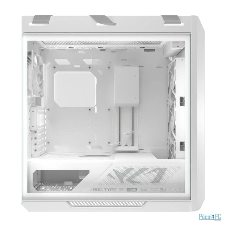 E-ATX, White, 2x3,5", 4x2,5", 4xUSB3.2, 2xUSB Type-C, Audio, Táp nélkül, 591x565x250mm, Ventilátor:4x14cm, Tempered glass window, RGB, Gamer