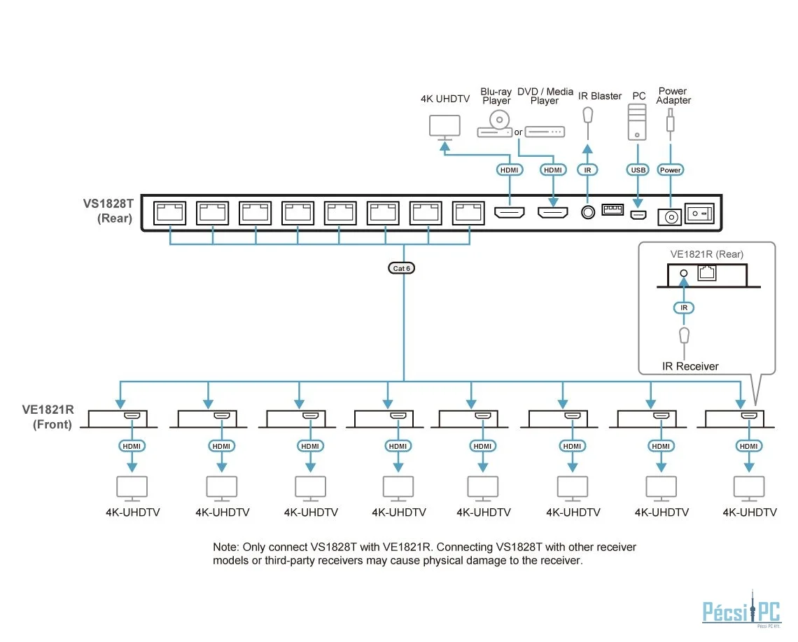 ATEN VS1828KIT 8-Port 4K HDMI Cat 6 Splitter with Receivers
