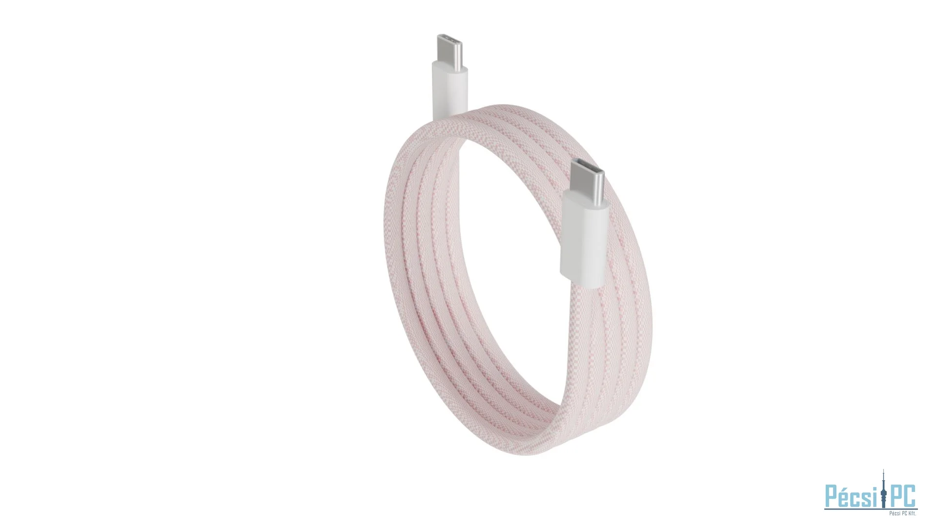 USB kábel, USB-C, USB-C, USB3.0, Male/Male, 1m, Pink, Töltő és adatkábel, Szövetborítás
