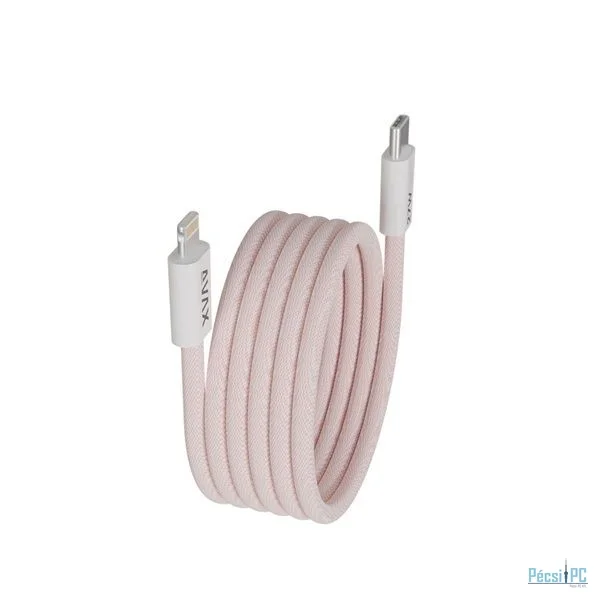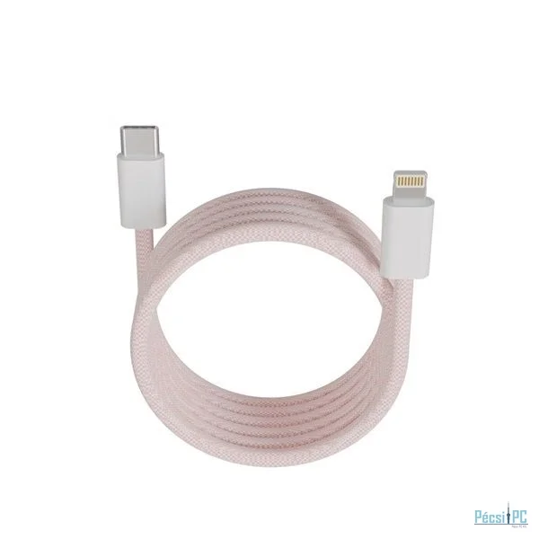 USB kábel, USB-C, Lightning, USB3.0, Male/Male, 1m, Pink, Töltő és adatkábel, Szövetborítás
