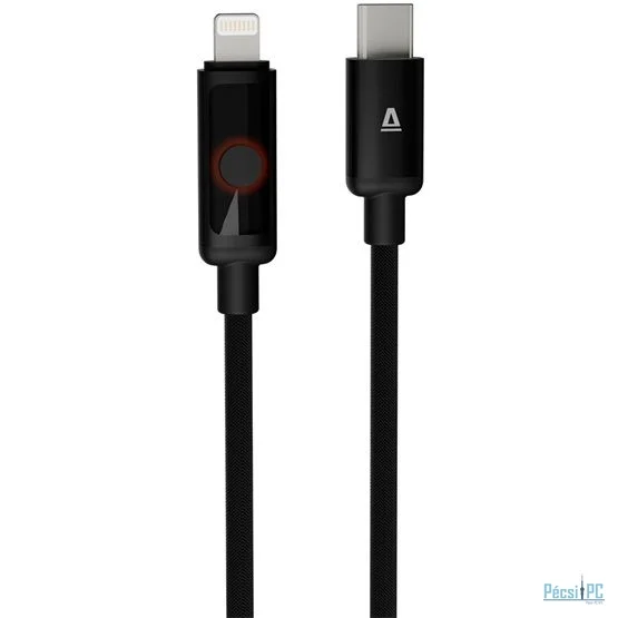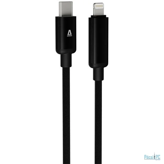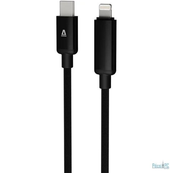 USB kábel, USB-C, Lightning, Male/Male, 1m, Black, Töltő és adatkábel, Szövetborítás