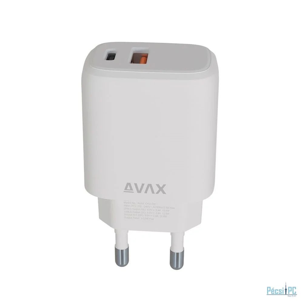 Avax CH312W SPEEDY USB A + USB C töltő adapter 12W White