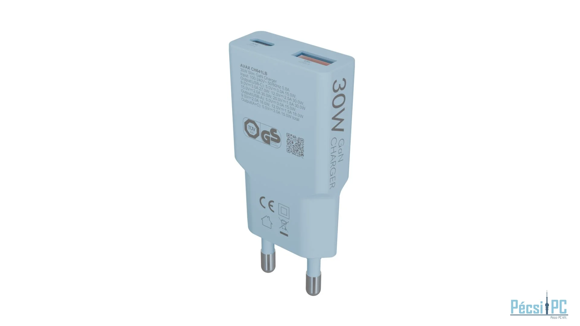 Adapter, 1xUSB-A, 1xUSB-C, 5V/9V/12V/15V/20V, 3A, 30W, QC, PD, Blue