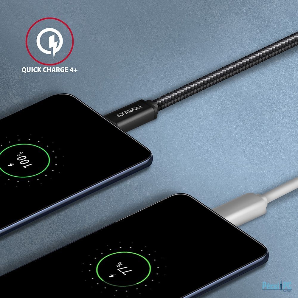 Prémium összekötő USB-C <-> USB-A adat- és töltő AXAGON BUCM3-AM20AB SPEED USB 3.2 Gen 1 kábel USB-C male és USB-A male adapterek. A kábelt gyors adatátvitelre és notebook, telefon, táblagép és egyéb mobileszközök töltésére tervezték. Akár 5 Gb/s adatátvitelt és akár 3A áramú töltést is támogat.