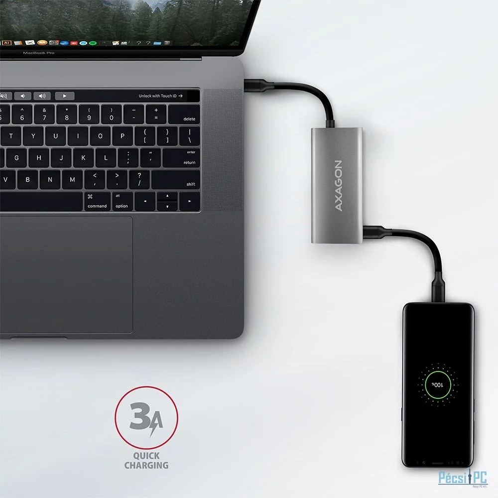 A Superspeed USB-C 3.2 Gen 2 hub AXAGON HMC-4G2 SPEEDSTER 4 négy porttal bővíti laptopját, számítógépét vagy telefonját. A kétoldalas USB-C csatlakozóval egyszerre és gyorsan akár négy USB-eszközt csatlakoztathat a számítógépéhez.