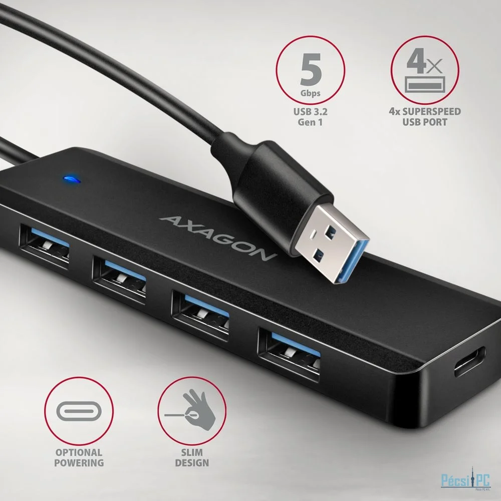 AXAGON HUE-C1A USB-A 5GBPS TRAVEL HUB Black