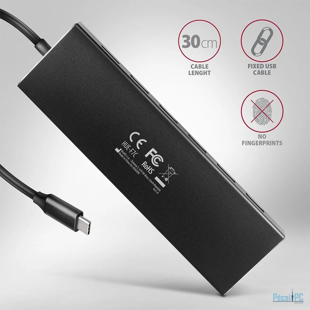 AXAGON HUE-F7C SuperSpeed USB-C FLAT CHARGING HUB Black