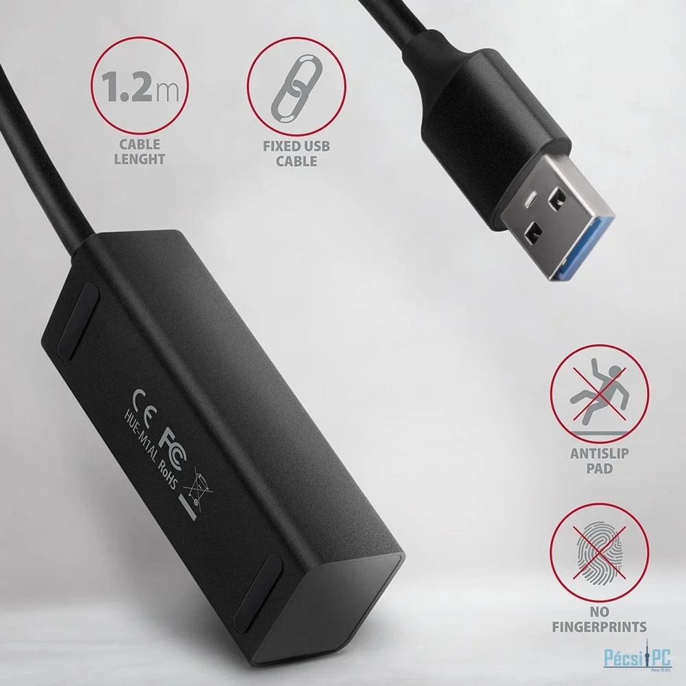 Mini fém USB 3.2 Gen 1 (USB 3.0) hub HUE-M1AL 1.2 m hosszú USB kábellel gyorsan és egyszerűen akár négy USB eszközt is csatlakoztathat számítógéphez.