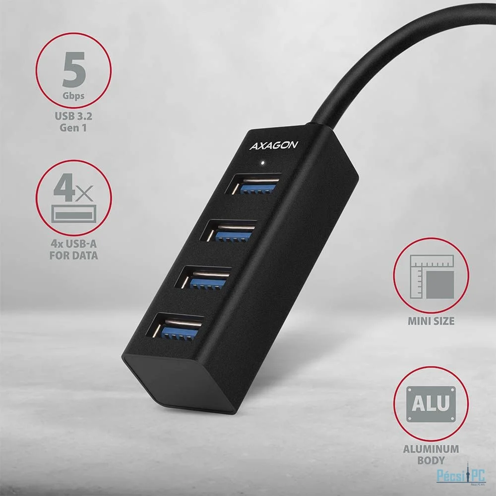 Mini fém USB 3.2 Gen 1 (USB 3.0) hub AXAGON HUE-M1C gyorsan és egyszerűen akár négy USB eszközt is csatlakoztathat laptophoz vagy számítógéphez.