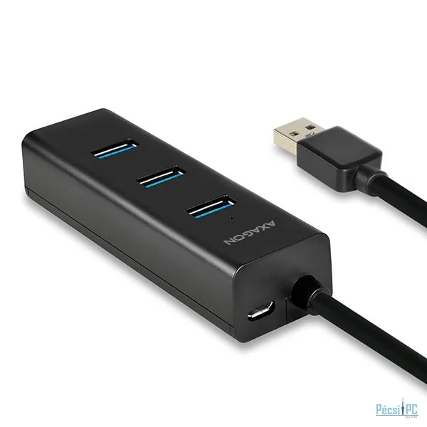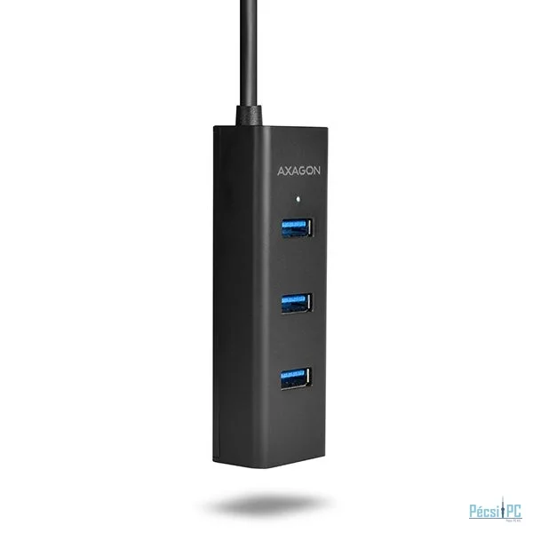 A négy portos AXAGON HUE-S2BL USB 3.0 hub 1,2 méteres USB kábellel, külső áramellátó és gyors töltés támogatással rendelkezik az összes portján.