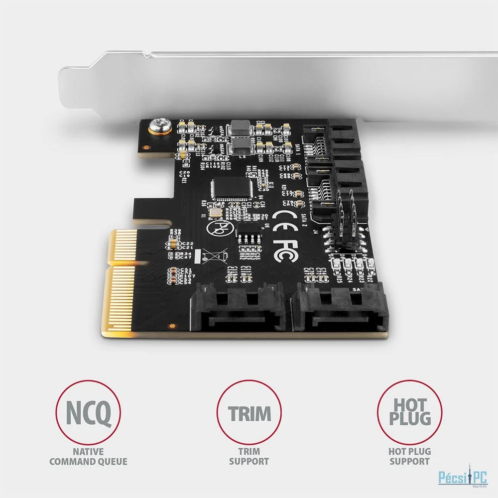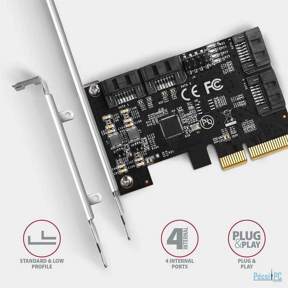 Az AXAGON PCES-SA4X4 PCI-Express kontroller négy SATA III porttal egészíti ki az ön asztali számítógépét, melyek akár 6Gb/s adatátviteli sebességre is képesek.