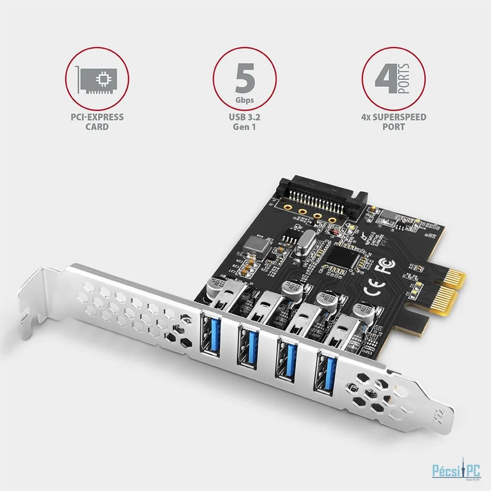 Az AXAGON PCEU-43RS PCI-Express kártya négy, nagy sebességű USB 3.2 Gen 1 porttal egészíti ki az asztali számítógépet. A kártyát gyors, akár 5 Gb/s sebességű adatátvitelre tervezték.