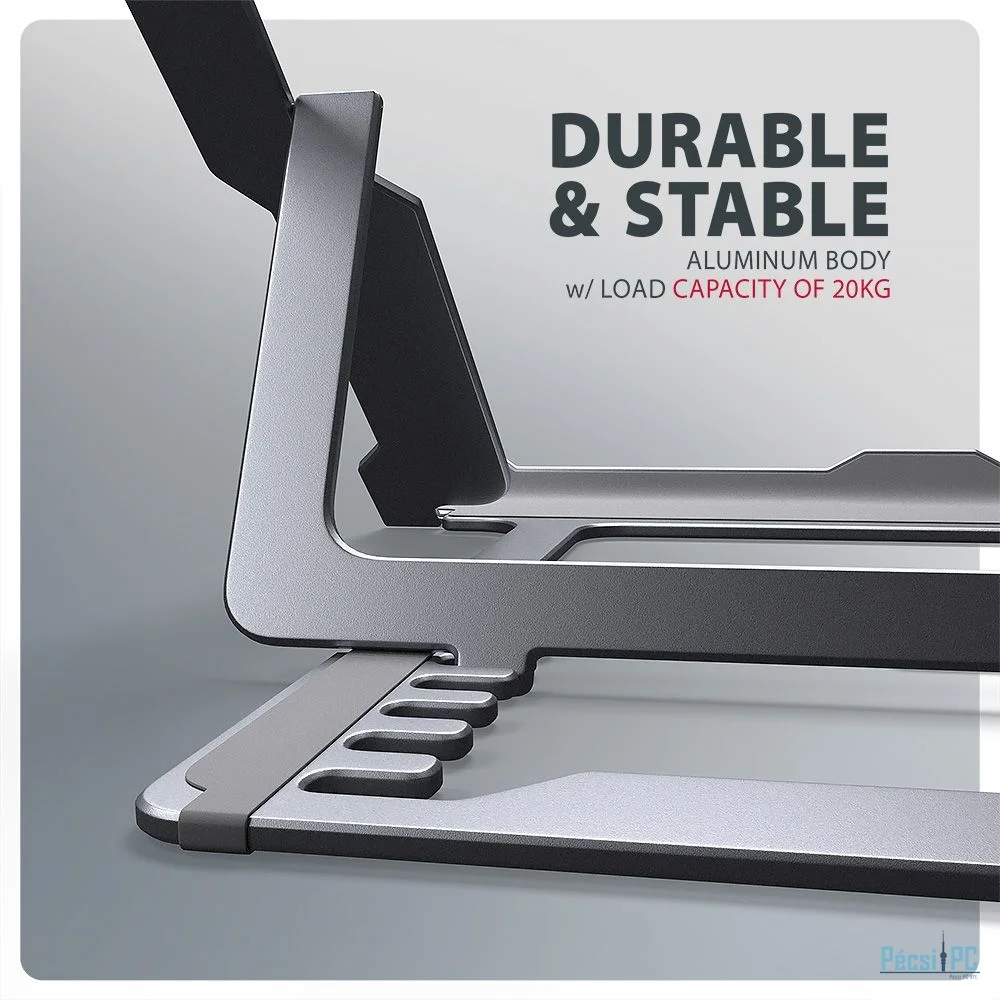 A talapzat alumíniumöntvényből készült, ami hosszú élettartamot és megbízhatóságot garantál. A csúszásmentes kivitelnek köszönhetően nem kell aggódnia a nem kívánt mozgások miatt – készüléke szilárdan a helyén marad anélkül, hogy a laptop vagy a pad felülete megsérülne. Ezek a gondosan megtervezett funkciók tökéletes stabilitást biztosítanak laptopja, táblagépe vagy akár kedvenc könyve számára, így nyugalmat és kényelmet biztosít a mindennapi használat során.