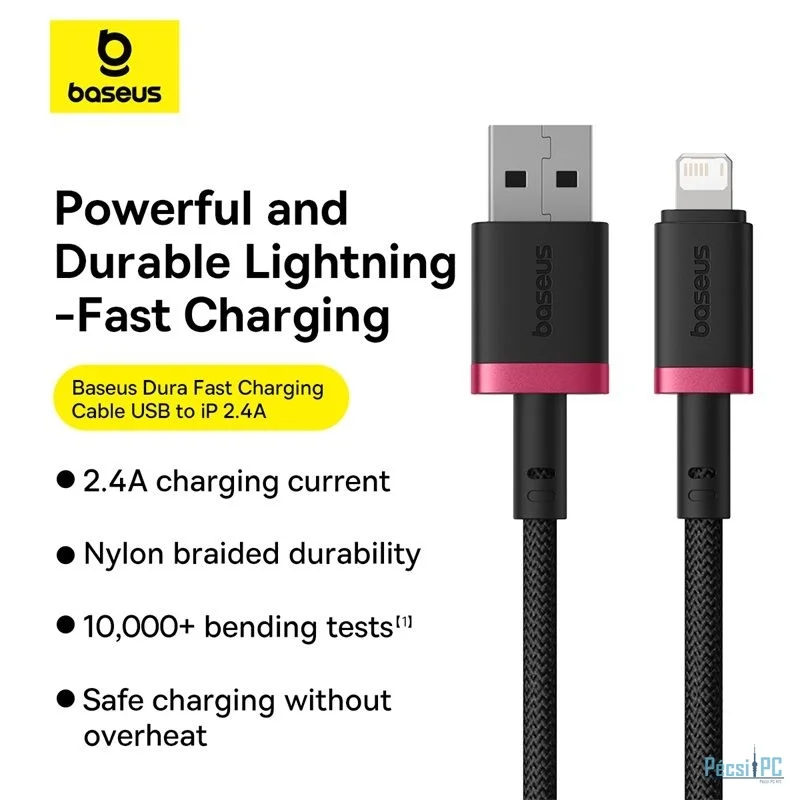 Baseus Dura Type A to IP 2.4A fast charging cable 2m Black Red
