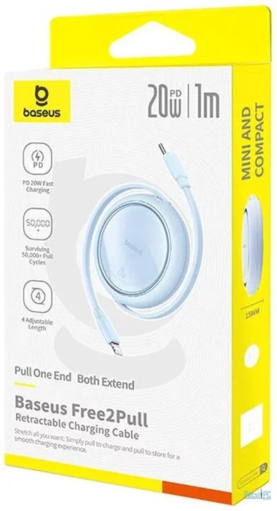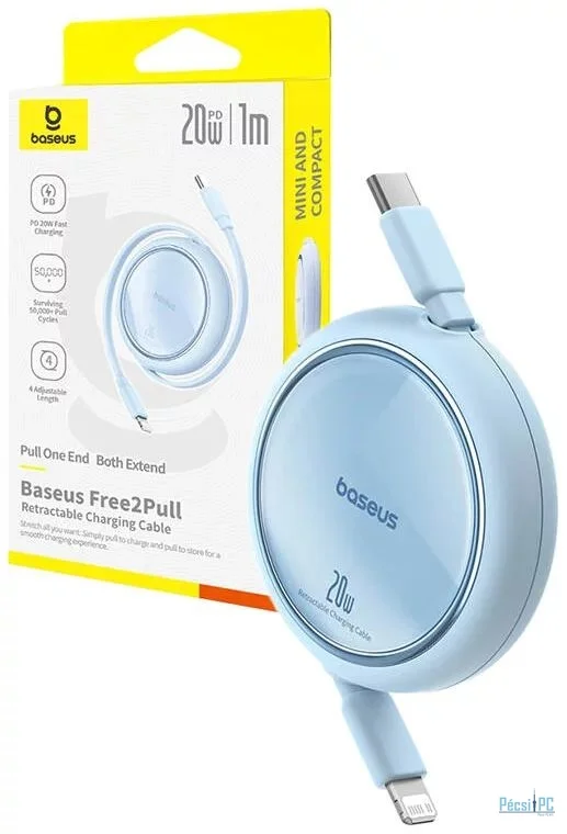 Baseus Free2Pull Expandable USB C to iP Ligtning 20W fast charging cable 1m Blue