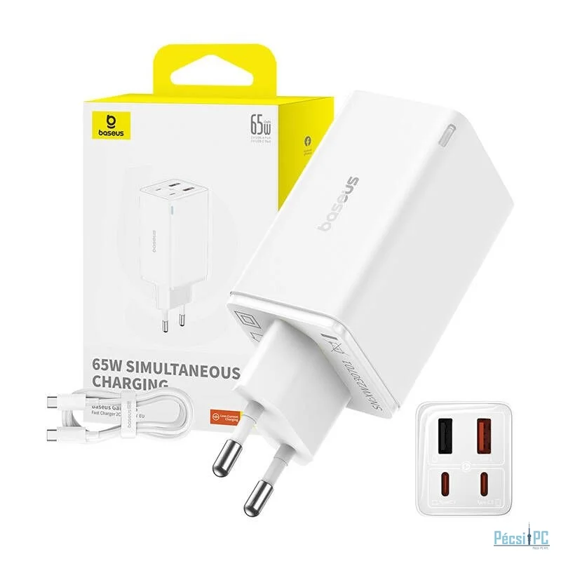 Adapter, 2xUSB-A, 2xUSB-C, 5V/9V/12V/15V/20V, 3,25A, 65W, QC, PD, White