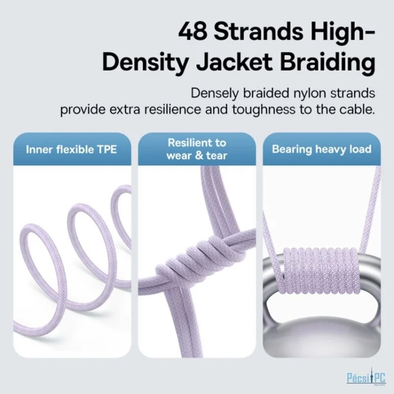 USB kábel, USB-C, Lightning, USB2.0, Male/Male, 1m, Purple, Töltő és adatkábel, Szövetborítás