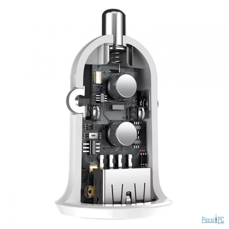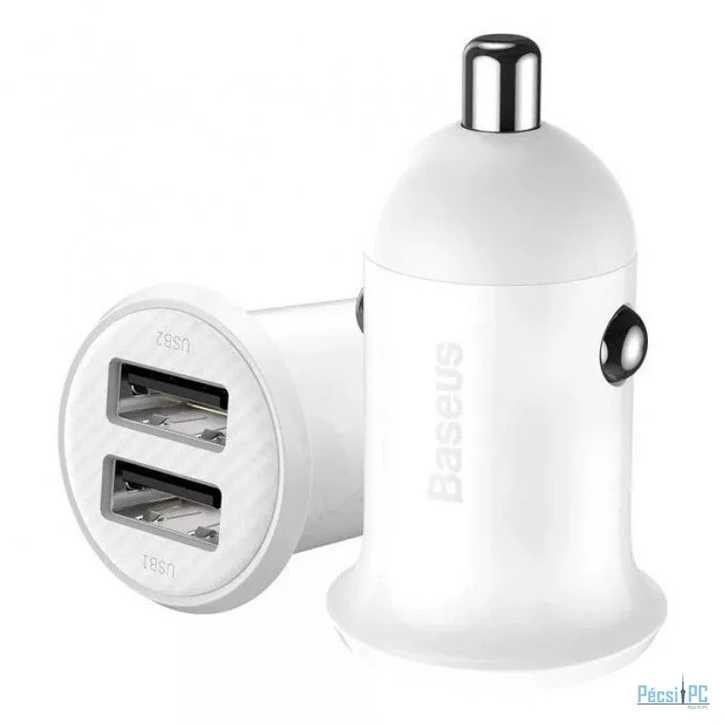 Autós töltő, 2xUSB-A, 12V/24VV, 2,4A, White