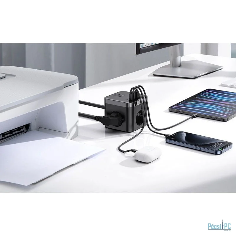 A Baseus PowerCombo hálózati töltő több portot és váltóáramú aljzatot kínál, így egyszerre több eszközt is csatlakoztathat hozzá. Sőt, biztonságos használatot biztosít, és kitűnik gondosan átgondolt kialakításával. Ezenkívül a széles körű kompatibilitás növeli a használat kényelmét. Töltse fel berendezését kényelmesen és gyorsan. A táptöltő 2 USB-C és 2 USB-A portot kínál, és 30 W maximális teljesítményt kínál, így egyszerre több eszközt is tölthet. Sőt, a Baseus PowerCombo 3 váltóáramú aljzattal van felszerelve, amelyekhez további berendezéseket csatlakoztathat.