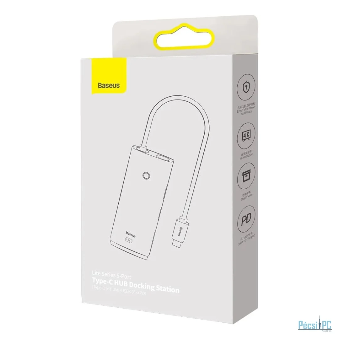 Baseus Lite Series 5 in 1 Type C To HDMI + USB3.0 x3 + Type C PD Port Black