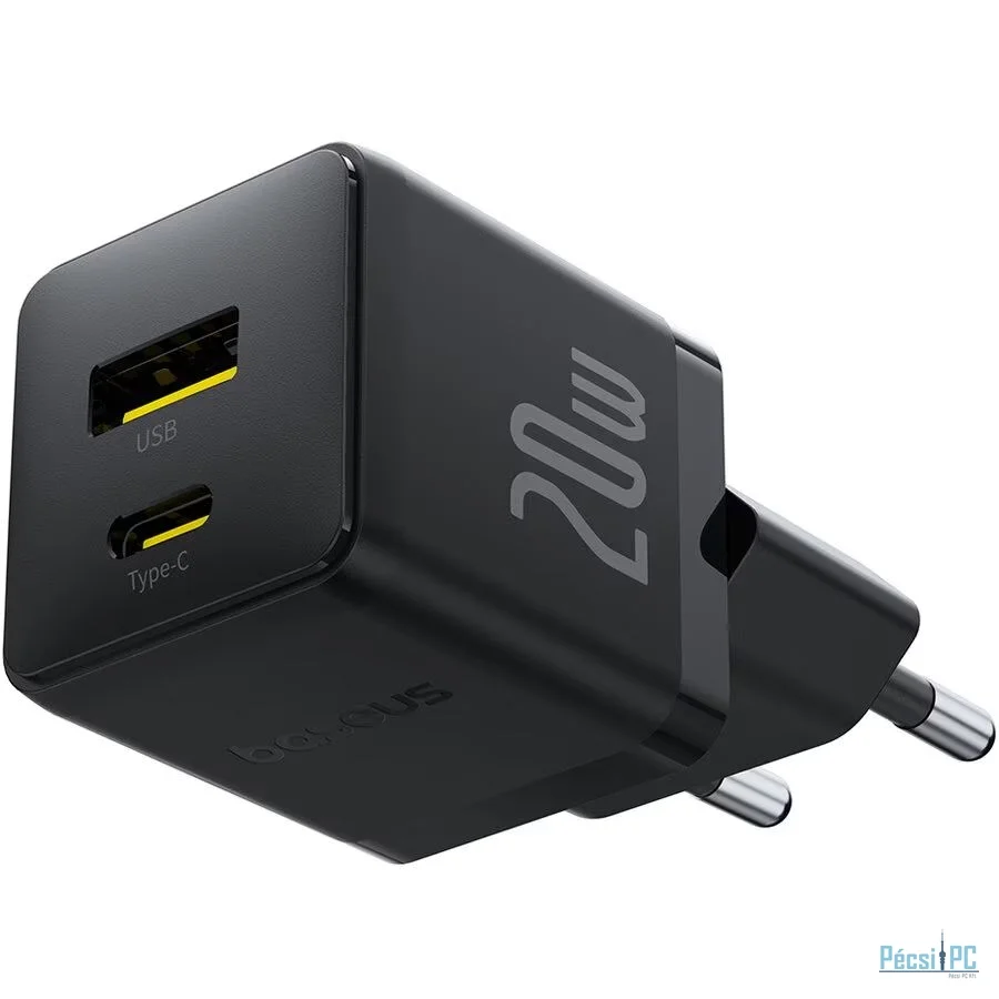 Adapter, 1xUSB-A, 1xUSB-C, 5V, 3A, 20W, PD, Black