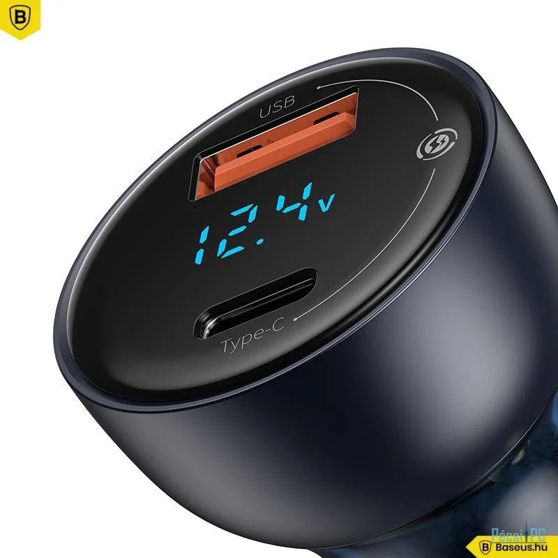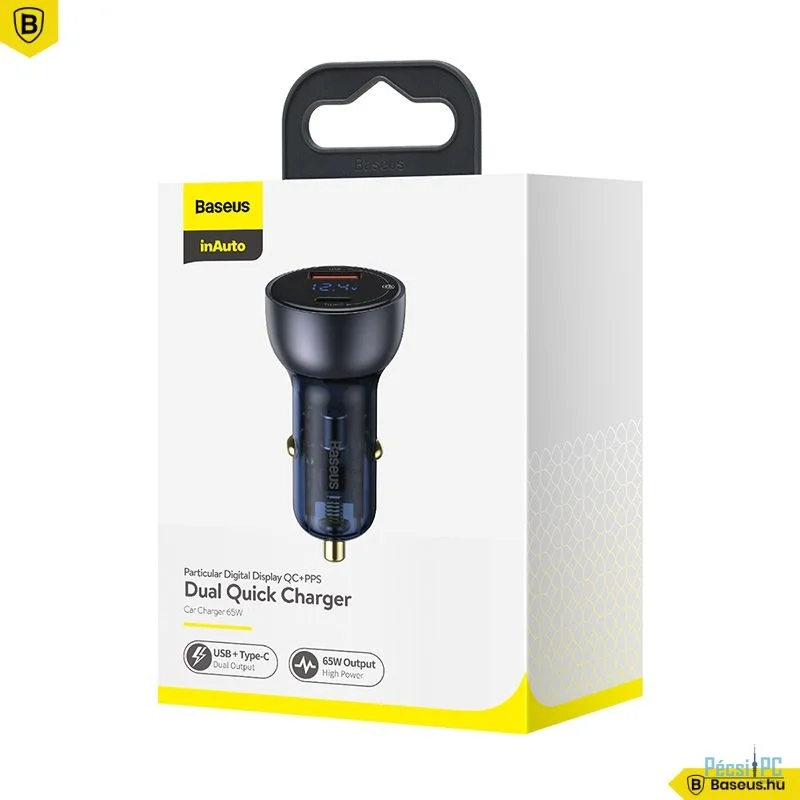 Autós töltő, 1xUSB-A, 1xUSB-C, 4,5V/5V/9V/12V/15V/20V, 5A, 63W, QC, PD, Grey