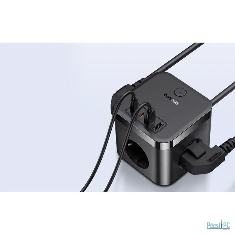 Elosztó, 3xDIN, 1,5m, USB, Black