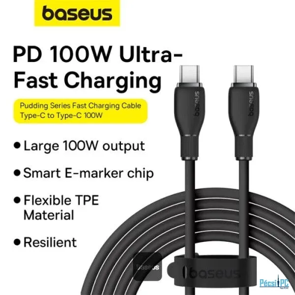 Baseus Pudding Series Fast Charging Cable With High-Speed Data Transmission Type-C to Type-C 100W 5A 1,2m Black