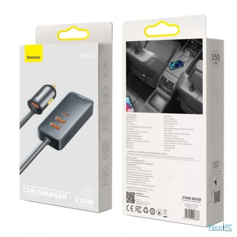 Baseus Share Together autós töltő hosszabbítóval 3x USB USB-C 120W Grey