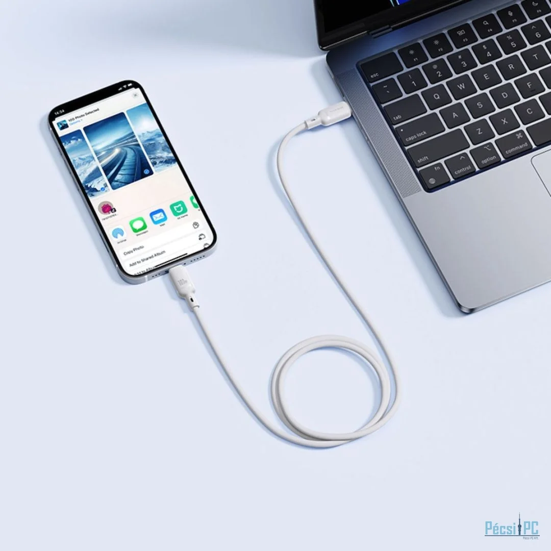 USB kábel, USB-C, USB-C, USB2.0, Male/Male, 2m, White, Töltő és adatkábel
