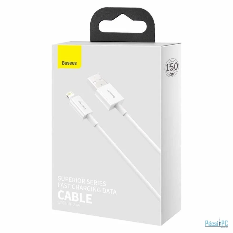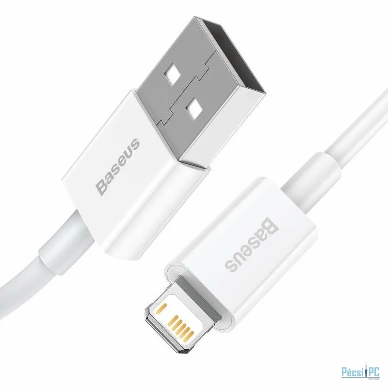 USB kábel, USB-A, Lightning, USB2.0, Male/Male, 1,5m, White, Töltő és adatkábel