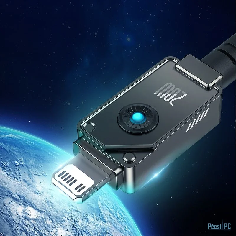 USB kábel, USB-C, Lightning, USB2.0, Male/Male, 1m, Black, Töltő és adatkábel, Szövetborítás