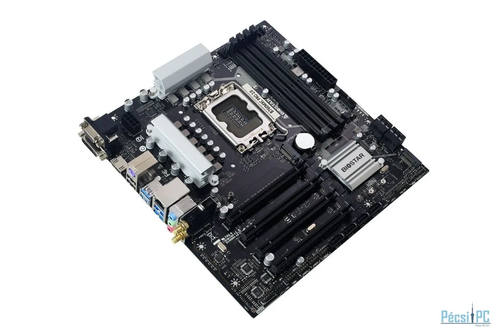 LGA1700, Intel B760, 4xDDR4, Max:3200MHz, Max:128GB, 1xPCIE16, 3xPCIE1, 8xSATA3, RAID, 2xUSB, 4xUSB3.2, DVI, VGA, HDMI, PS2:1 db, 7.1, Gigabit, 2xM.2, Micro-ATX
