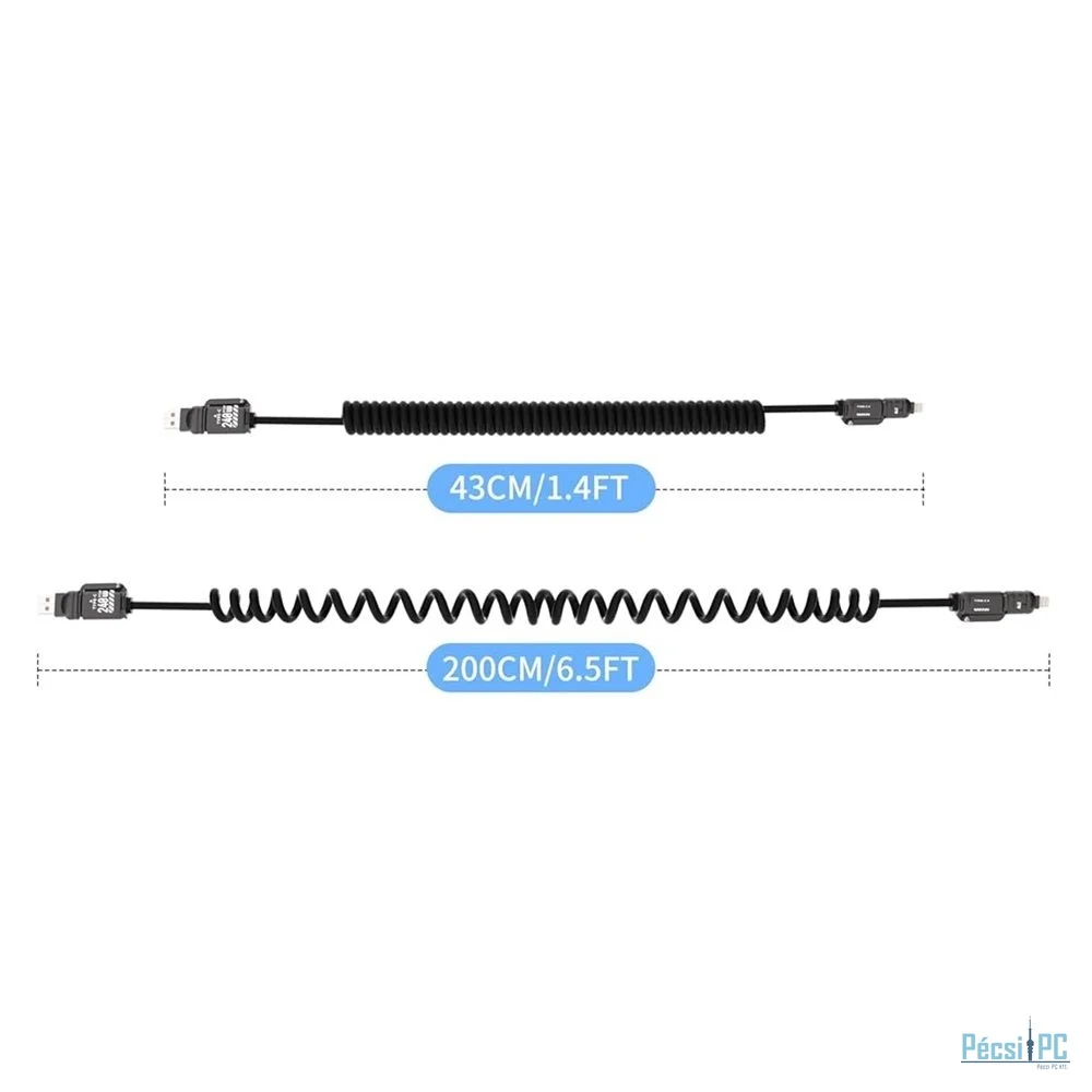 USB kábel, USB-C/USB-A, USB-C/Lightning, USB2.0, Male/Male, 2m, Black, Töltő és adatkábel