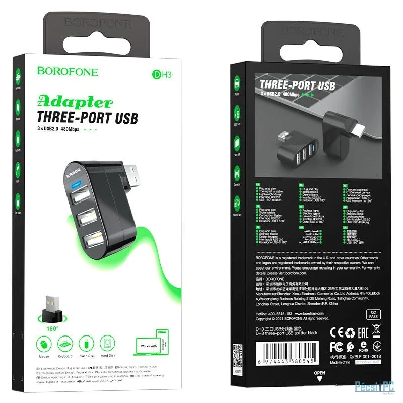 BOROFONE DH3 3-ports Splitter USB-C Hub Black