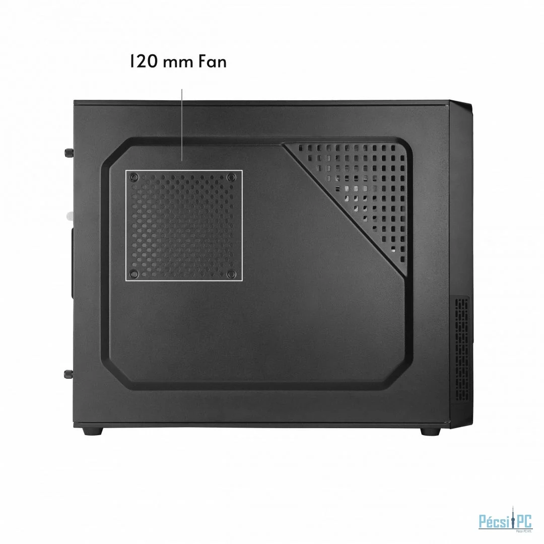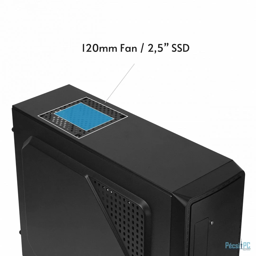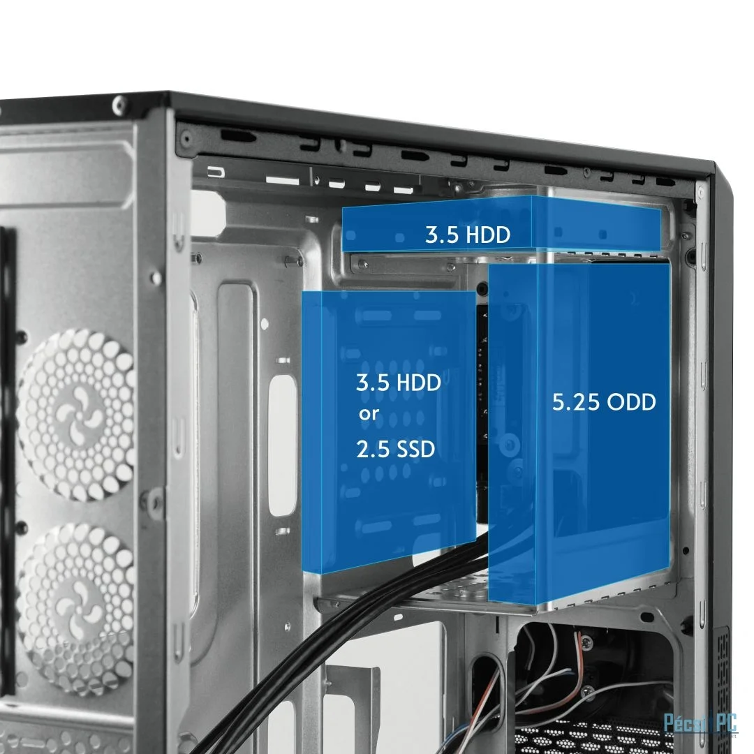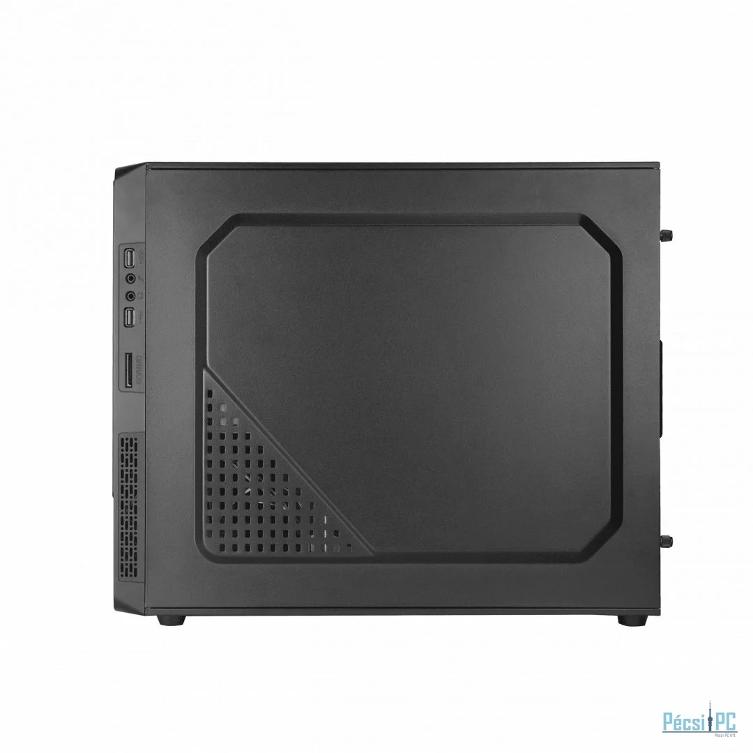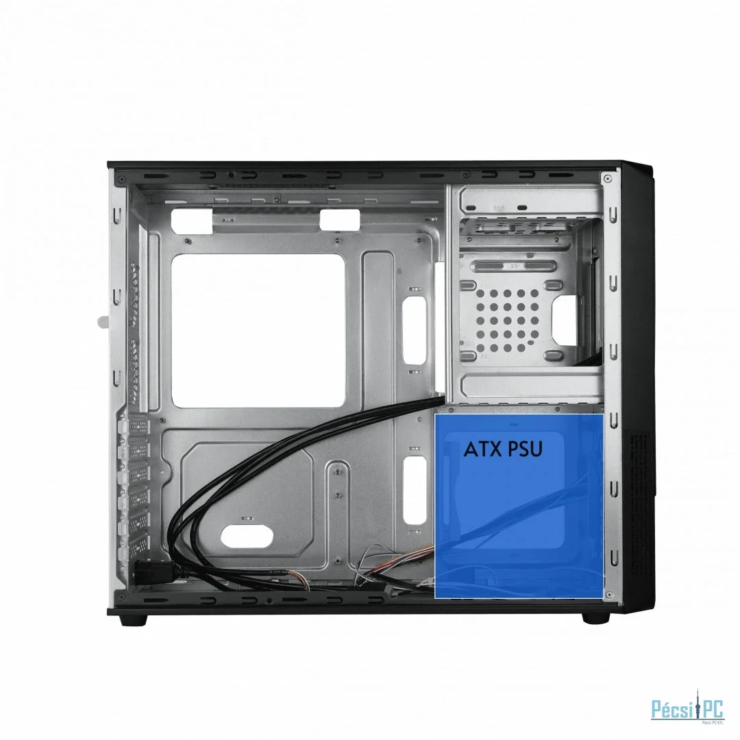 ATX, Black, 1x5,25", 2x3,5", 2x2,5", 2xUSB3.2, Audio, Táp nélkül, 433x166x373mm, kártyaolvasó